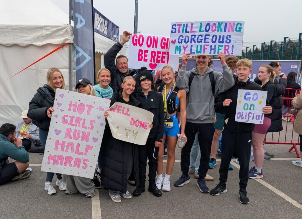 Bolton-born Olivia Lowe took on her first half marathon for the Moya Cole Hospice, with family and friends cheering her on with gusto over the 13.1 mile course. Olivia took part for her ‘Pappi’, who passed away from bowel cancer last year: